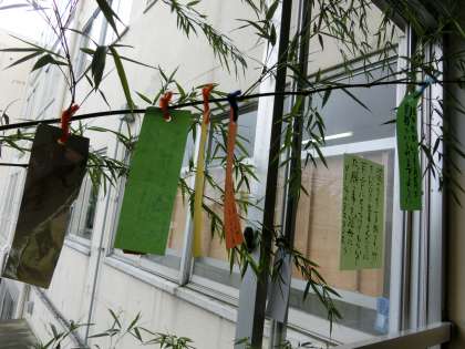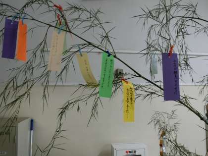 七夕の笹飾り。どんなお願いごとをしているのかな。
