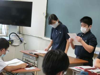 1年生は、今日議案書の読み合わせを行っていました。学校をよりよくするための要望を出してください。