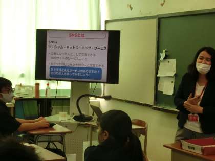 1年B組のネットリテラシー醸成講座でした。講師の先生の質問に積極的に答えていました。
