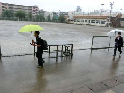 雨の中元気に登校してきました。