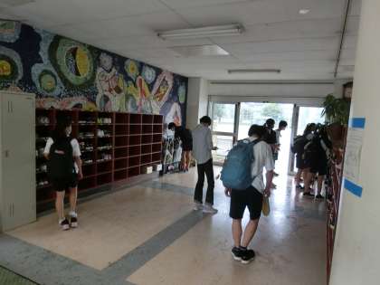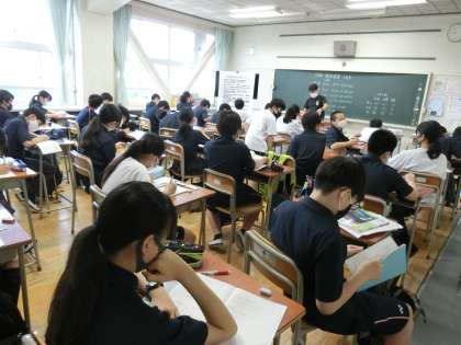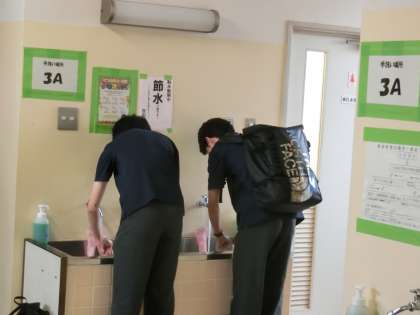 1学期期末考査1日目2 7月15日(水) 公開日 2020/07/15 更新日 2020/07/15 できごと 定期テスト期間も、変わらず朝来たら手洗いですね。 テスト前の自主学習の様子です。テキストと真剣に向き合う生徒たち。1時間目は英語です。 いいね(0)