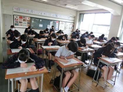 1学期期末考査2日目7 7月16日(木) 公開日 2020/07/16 更新日 2020/07/16 できごと もうすぐ終了時刻。 2日間の期末考査お疲れさまでした。 いよいよ2週間後は夏休み。その頃は、きっと梅雨もあけていますね。 今日はこれから、水泳部とプール開き&おさめをします。 いいね(0)