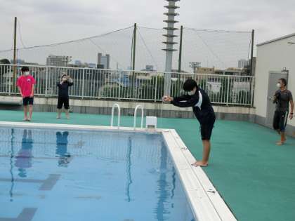 部活動開始5 7月16日(木) 公開日 2020/07/17 更新日 2020/07/17 できごと 顧問の一倉先生、鈴木慶子先生から言葉をいただき、部長・副部長のあいさつ、お神酒をプールに入れました。 プール納め同時に行いました。 いいね(0)