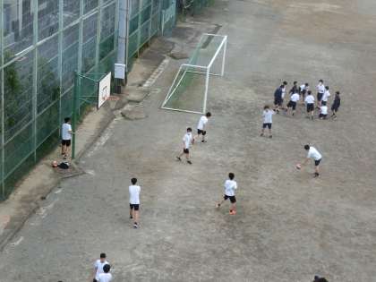 昼休み、今日も子どもたちは元気に校庭で遊んでいました。ソーシャルでスタンスを気にしながら、遊んでくれていますね。