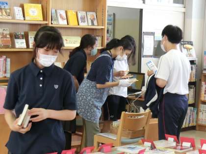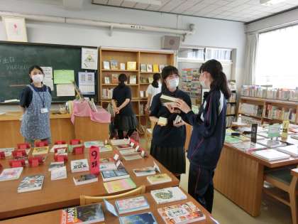 図書室の新書バイキング最終日の今日は3年生でした。