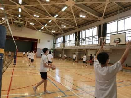 3年生男子は、体育館でバレーボール。