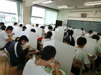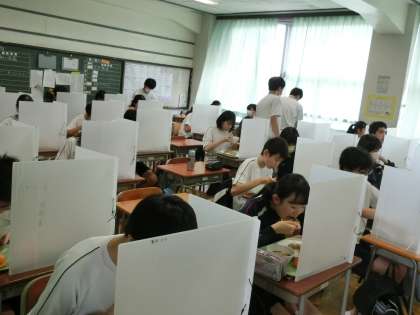 今日も協力して、給食準備。放送を聞きながらおいしく食べています。