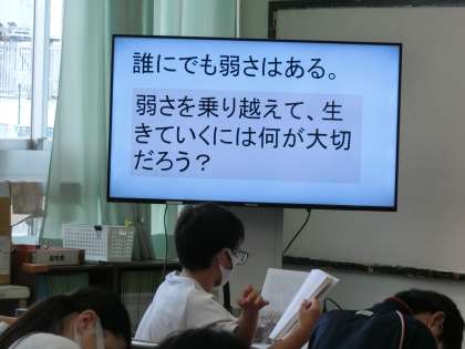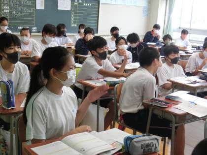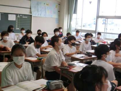 授業参観に回っていたら、ちょうどとっても良い意見をある生徒が発表してくれたところでした。素敵な意見にみんなから温かい拍手をもらっていました。