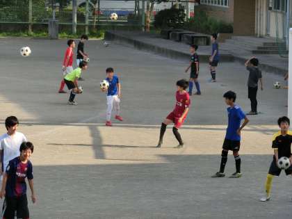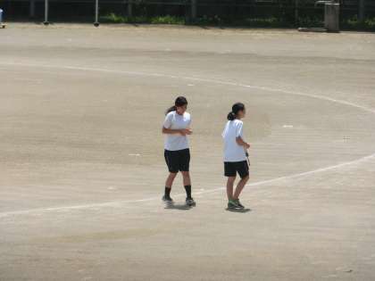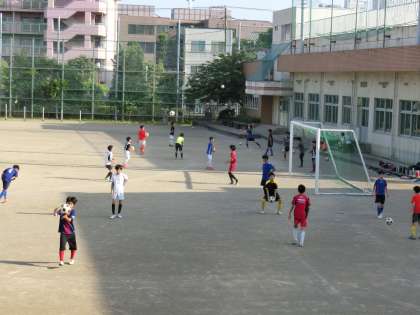 校庭で、暑い中熱中症に気を付けてサッカー部等も頑張って活動しています。