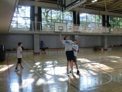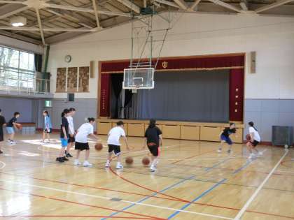 体育館ではバスケットボール部、格技室では卓球部が、それぞれ頑張って活動していました。