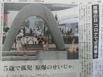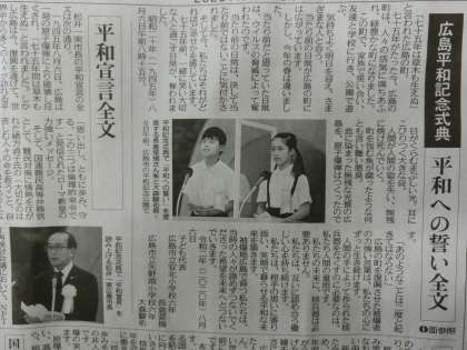 昨日8月6日、広島への原爆投下から75年の節目となる「原爆の日」平和記念式典が開かれました。広島市長の「平和宣言」に引き続き、子どもたちによる「平和への誓い」が読み上げられました。紹介します。