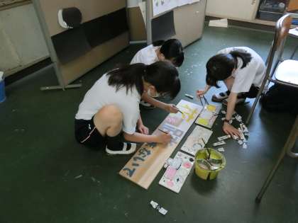 美術室では、美術の活動がありました。ポスター作りや看板づくり。みんな楽しそうでした。