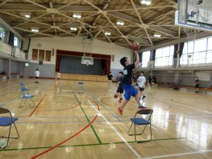 校庭では、野球部、サッカー部が、体育館ではバスケットボール部が一生懸命練習をしています。
