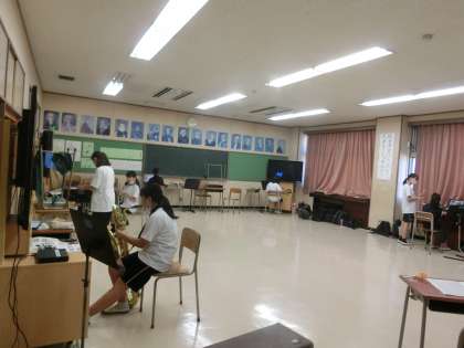 吹奏楽部は、やっと個人個人で楽器の演奏ができるようになりました。