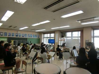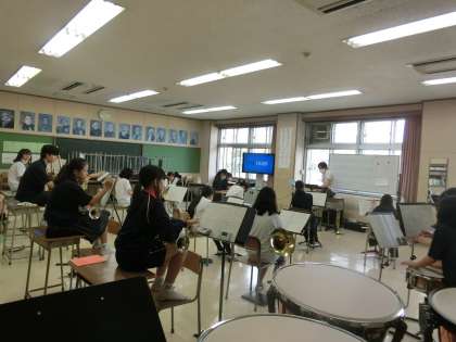 音楽室では、吹奏楽部が集まって、練習をしていました。