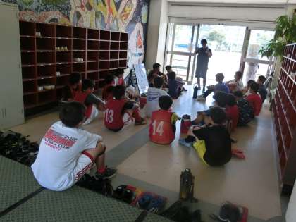 夏休み部活動1 8月28日(金) 公開日 2020/08/28 更新日 2020/08/28 できごと サッカー部は今日も練習試合を弦巻中学校の校庭で行いました。 対深沢中学校との試合です。顧問の坂本先生から気合のこもったミーティングの後、校庭に走っていきました。赤のビブスが弦中生です。 いいね(0)