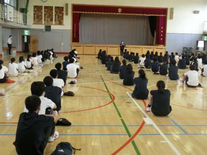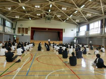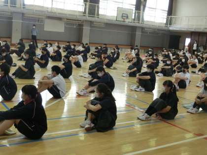 学年集会1 9月1日(火) 公開日 2020/09/01 更新日 2020/09/01 できごと 学期はじめの学年集会も密を作らないように配慮して行いました。2学期も全校生徒で集まることは、なかなかできません。 いいね(0)