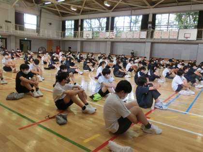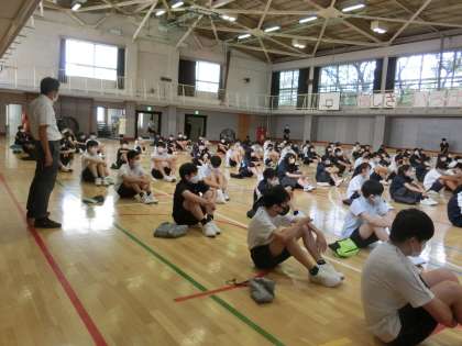 学年集会2 9月1日(火) 公開日 2020/09/01 更新日 2020/09/01 できごと 3年生の学年集会に潜入。 学年主任の仲先生から夏休み読んだ本の紹介がありました。 「3S(生徒・整頓・そうじ)」を大事にしようという話です。3Sを大事にした生活を送ると間接的に「いろいろなことに気づける人になれる」というお話でした。感慨深いです。自分の身の回りをもう少し整理整頓・掃除をしようと思いました。 いいね(0)