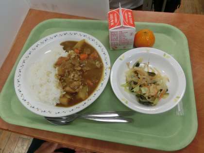 子どもたちが大好きな「カレーライス」でした。冷凍ミカンもついてます。