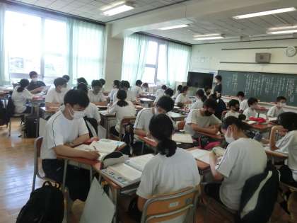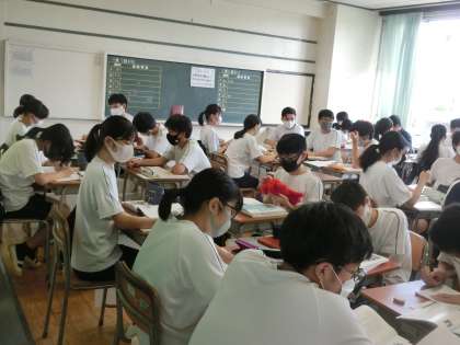 2学期学校生活6 9月7日(月) 公開日 2020/09/07 更新日 2020/09/07 できごと I組音楽の続きです。 3年生の国語の授業では、班での意見交換を行っていました。ソーシャルディスタンスで!! いいね(0)