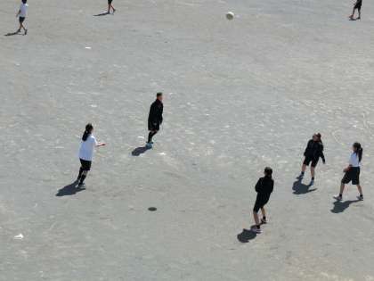 休み時間、図書室で本を読んだり、校庭でバレーボールやバスケットで遊んでいます。