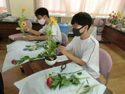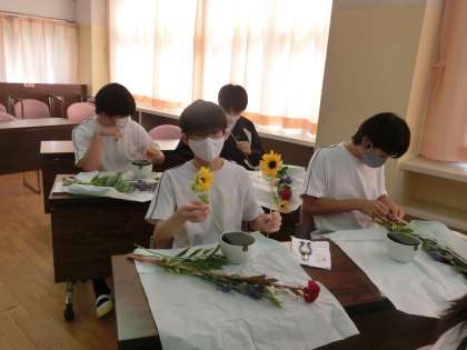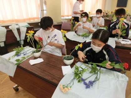 生け花の先生が、皆さんの生け花に取り組む姿勢をほめてくれていました。生けた花は、お家に飾ってくださいね。