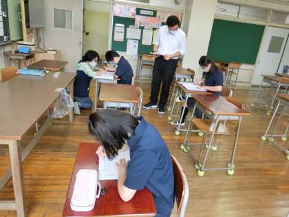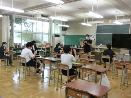 土曜授業1 9月19日(土) 公開日 2020/09/19 更新日 2020/09/19 できごと 9月に入って、2回目の土曜授業日でした。いつもより遅刻者が多かった今日この頃です。 2学期以降、土曜授業が2回になります。 I組国語の授業です。 いいね(0)