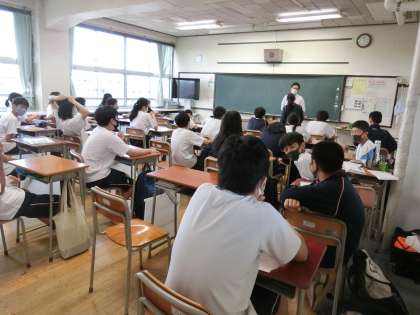 土曜授業2 9月19日(土) 公開日 2020/09/19 更新日 2020/09/19 できごと 教育実習生が最終日でした。 最後の授業を終えて、2年A組で最後の学活。一人一人にお手紙を配っていました。このあと、子どもたちからサプライズが!! いいね(0)