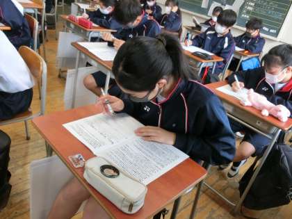 はじめの設問のところには「自分と同じことを思っている人がいて安心した」「自分と同じ思いがあって良かった」など、書いている人がたくさんいました。より良い気持ちや心を共有し、良い集団になるために、しっかりと目標をもち、それに向かって前進できる1年生になってほしいです。君たちなら必ずできます。