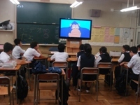 6月16日(木)、いつも元気な3年生が修学旅行でいないため、1・2年生だけで少し静かに活動しました。昨日は「百人一首」という日本文化にふれる活動でしたが、今日は一転して「英語の歌」のビデオを見ました。みんながよく知っている「Head,Shoulders,Knees and Toes」や「Mary Had a Little Lamb」などの歌がたくさんあったため、楽しく英語にふれることができたようです。