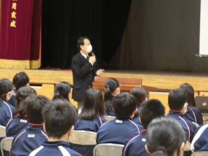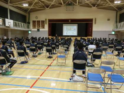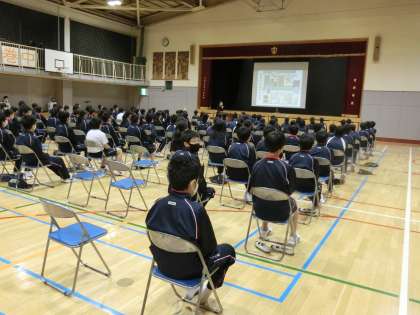 防災講演会1 12月12日(土) 公開日 2020/12/12 更新日 2020/12/12 できごと 年に一度、昭和女子大学教授清水先生をお迎えして、防災講演会を行いました。1年生とI組は、体育館で清水先生のお話を直接聞きました。 いいね(0)