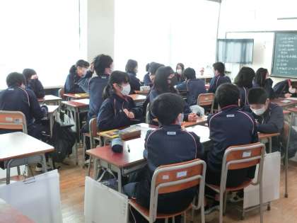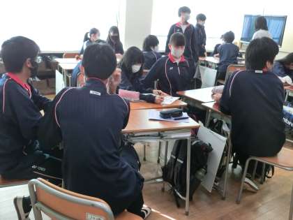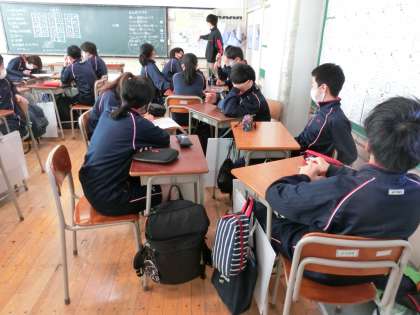 2年生は、席替え終了後、新しい班で役割分担決めをしているクラスもありました。