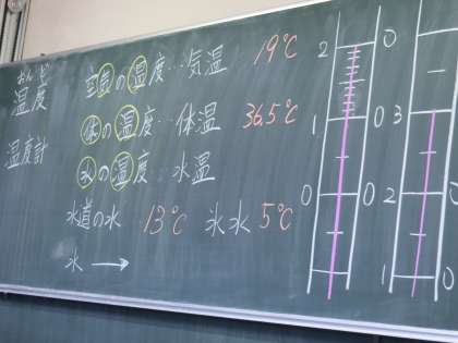 I組の授業3 12月15日(火) 公開日 2020/12/15 更新日 2020/12/15 できごと 理科の時間は、副校長先生が温度計の図り方について授業をしました。実際に水道水の温度を計測してみました。 いいね(0)