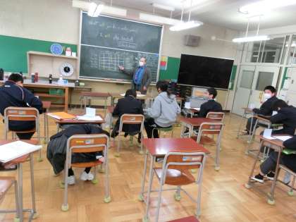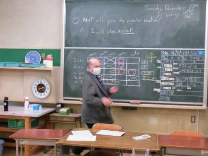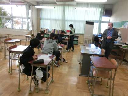 英語の授業には、ALTのクリス先生がきてくれました。英語を使ったゲームをしました。みんなの発音がとても良かったです。