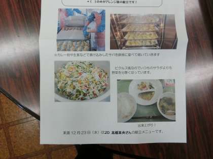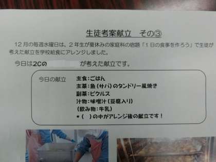 第3段、2年生の生徒が臨時休校中に家庭科の課題で考えて家で作ったメニューを給食にアレンジしてもらいました。