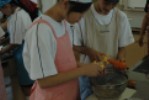 6月30日(木)、今回は1年生だけで調理実習(カレー作り)をしました。1年生は中学校に入学後初めての調理実習でしたが、誰もケガをすることなく、みんなで楽しく調理することができました。「上手にできたね!」「おいしいね!」と、みんな満足そうに食べていました。先週、先輩たちが作ったカレーを分けてもらっているので、今日は先輩たちに自分たちの作ったカレーをおすそ分けして食べてもらいました。先輩たちに「おいしかったよ!」と言ってもらい、1年生はとても嬉しそうな表情をしていました。