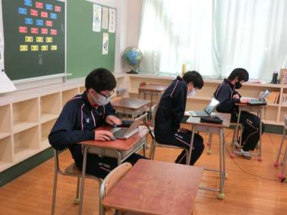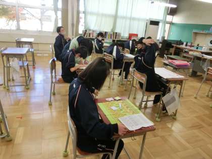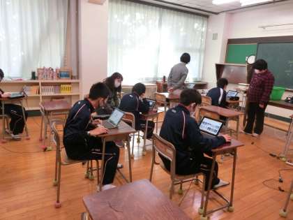 I組作業と家庭科の授業です。作業ではパソコンで、カレンダーづくりをしています。