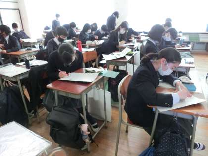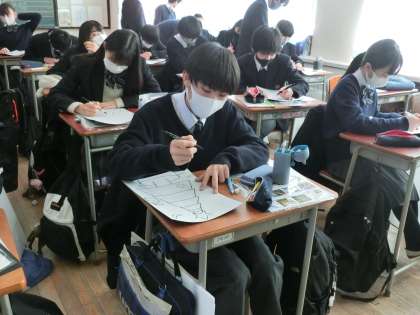今日の弦中生6 12月18日(金) 公開日 2020/12/19 更新日 2020/12/19 できごと 2年生美術は「ステンドグラス」のデザインを考える授業でした。すてきなステンドグラスができあがりますように…。 いいね(0)
