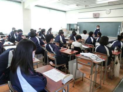 2年生の様子を見た後、3年生の教室をのぞきました。真剣に先生の話を聴く3年生。進路学習、願書の書き方など…。いよいよ3年生は受験が眼の前です。