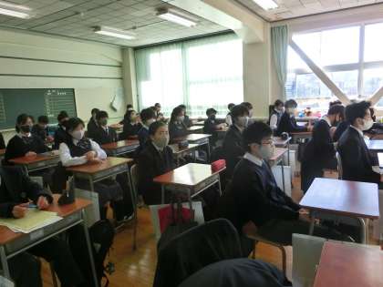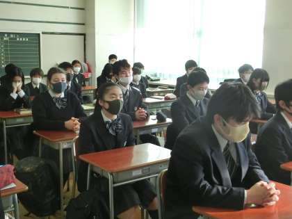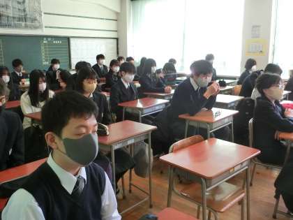 放送終業式中。校長の話をしっかりと聴いてくれている弦中生でした。