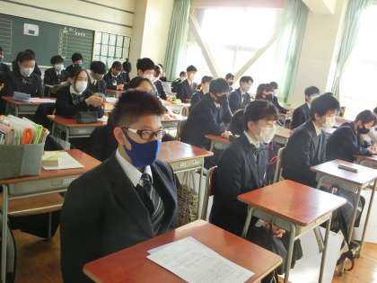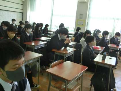3年生学級委員長のお話。3年生は、しっかりと話を聴いていました。あ