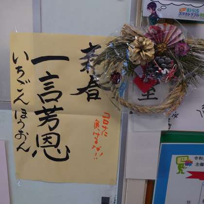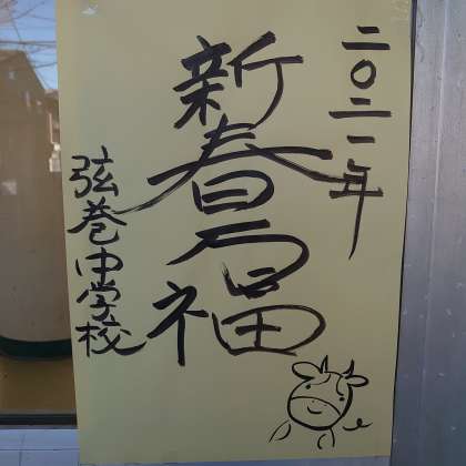 新しい年に数えきれないほどの福が訪れるようにと、昇降口に飾りました。
