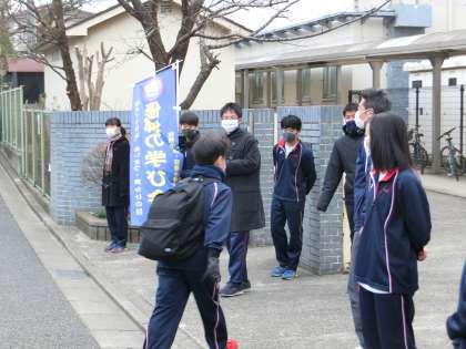 あいさつ声かけの日1 1月12日(火) 公開日 2021/01/13 更新日 2021/01/13 できごと 令和3年の生活委員会による「あいさつ・声かけの日」の活動です。10日がお休みだったので、12日になりました。朝早くから元気なあいさつで、弦巻中がスタートしています。 いいね(0)
