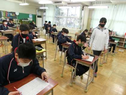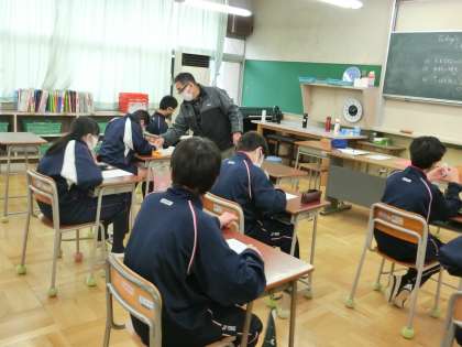 I組英語の授業です。英語で軍艦ゲームをしました。
