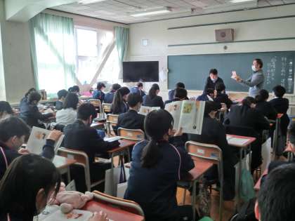 道徳授業地区公開講座1 1月16日(土) 公開日 2021/01/18 更新日 2021/01/18 できごと 道徳授業地区公開講座は、1年生の全クラスZoom配信をして保護者の方々にご参観いただくこととしました。2・3年生の保護者の皆さますみません。 1年生は「愛情貯金をはじめませんか」2年生は「行動する建築家 坂茂」3年生は「自他の生命の尊さ」I組は「節度・節制」をテーマに授業を行いました。 いいね(0)