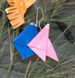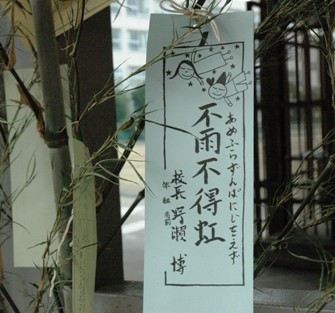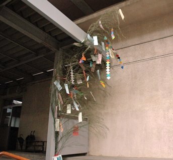 7月6日(水)、生徒会企画の七夕のイベントがありました。I組にも大きな笹を1本もらったので、みんなで短冊に願い事を書き笹に結びました。また、選択教科「もの作りグループ」で製作した飾りもつけました。