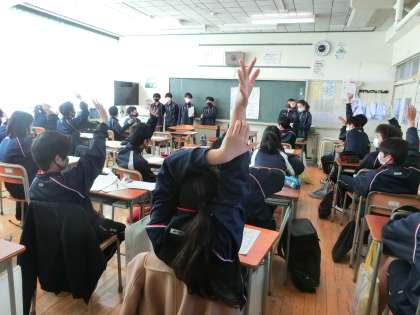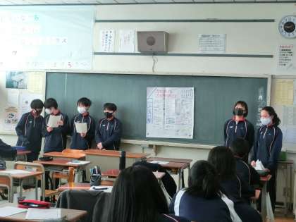 1年事前学習発表会1 1月20日(水) 公開日 2021/01/20 更新日 2021/01/20 できごと 1時間目の1年生は、先日の続き、校外学習事前学習発表会クラス発表を行っていました。 いいね(0)