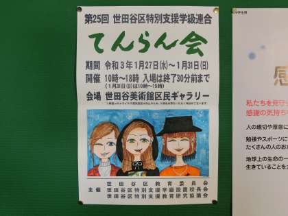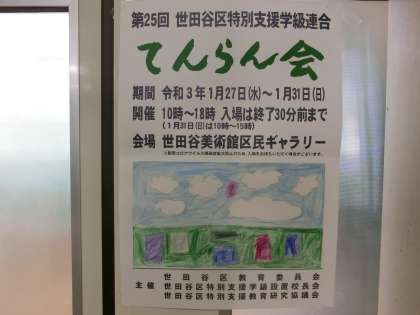 I組連展のポスター 1月22日(金) 公開日 2021/01/22 更新日 2021/01/22 できごと 27日から世田谷美術館で開催される特別支援学級連展のポスターが貼ってありました。ポスターの絵は、それぞれI組の生徒が書きました。とても上手に書けていました。 いいね(0)