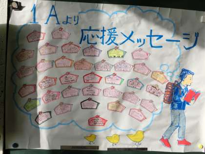 1年生応援メッセージ1 1月26日(火) 公開日 2021/01/26 更新日 2021/01/26 できごと 今日は都立の推薦入試日。朝読書の時間に3年生の教室をのぞくと、1年生が送った3年生への応援メッセージが掲示されていました。 いいね(0)