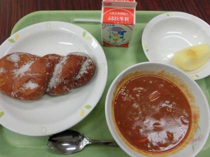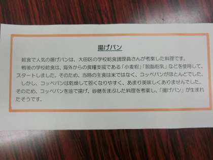 そとはカリカリ中はふわふわで、とてもおいしかったです。この揚げパンは、大田区の給食調理員さんが考案したそうです。